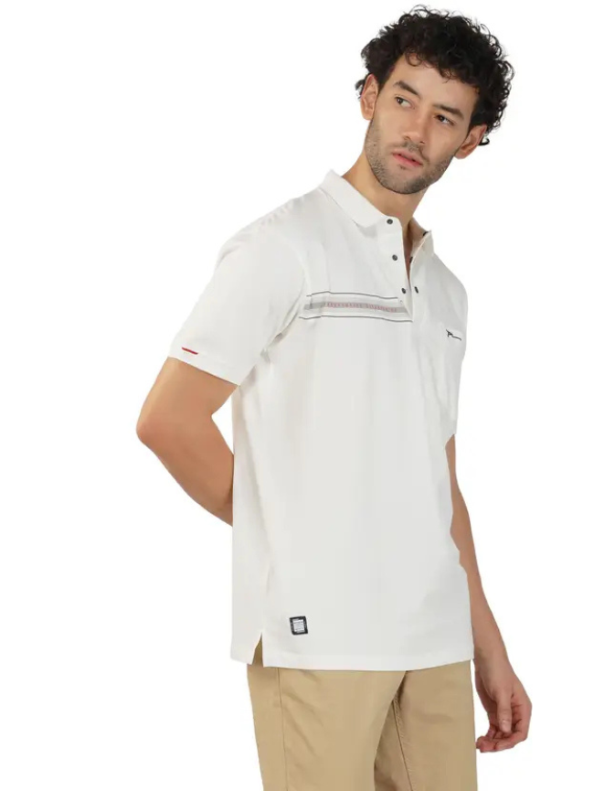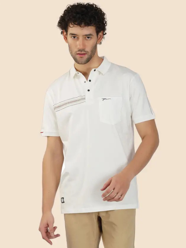 Men Solid Polo Neck Pure Cotton White T-Shirt