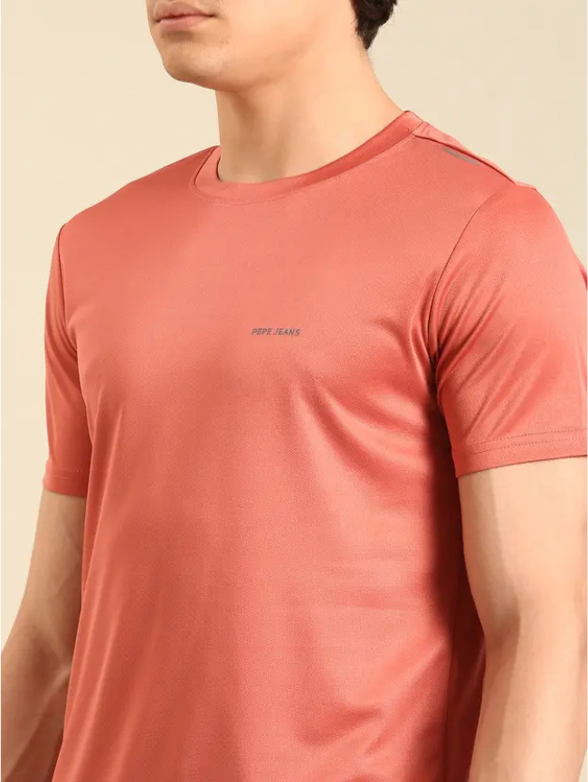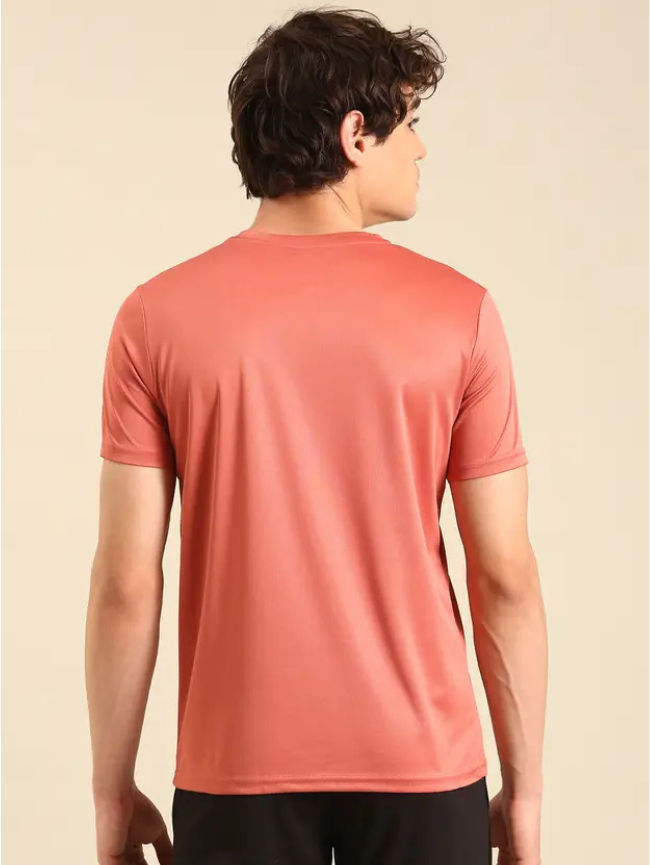 Men Solid Round Neck Polyester Pink T-Shirt