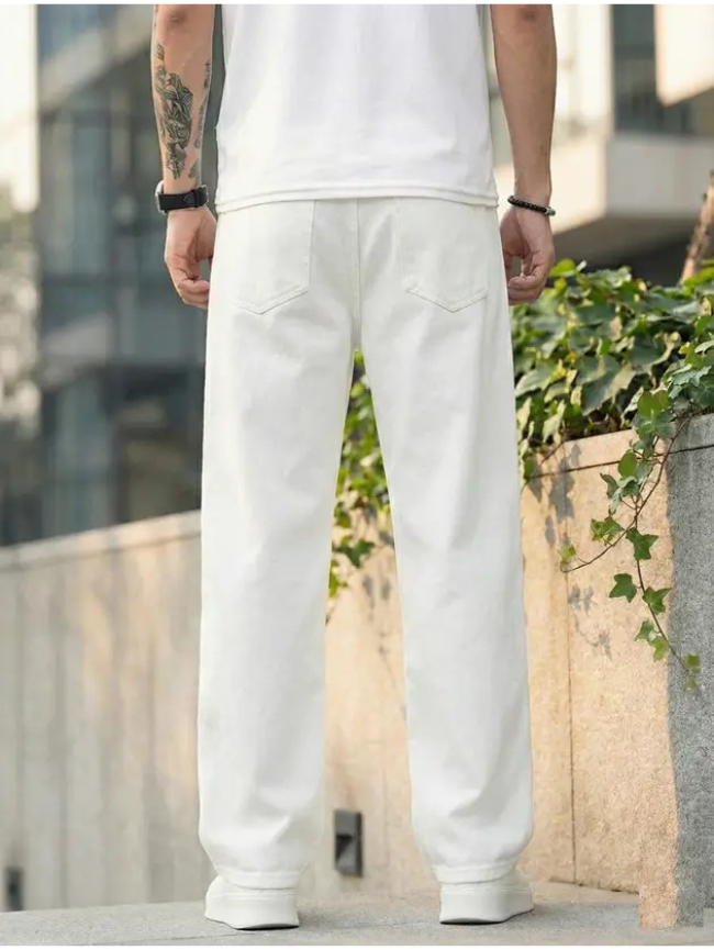 Men Straight Fit Mid Rise White Jeans