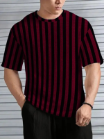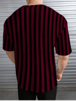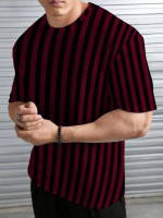 Men Striped Round Neck Polycotton Maroon T-Shirt