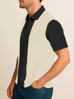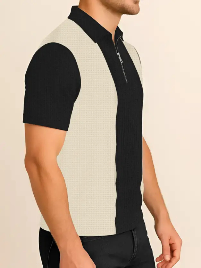 Men Striped Zip Neck Polyester Black, Beige T-Shirt