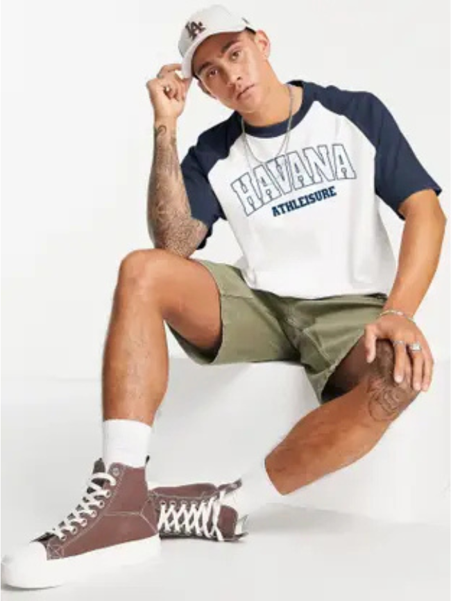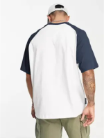 Men Typography Round Neck Cotton Blend White, Dark Blue T-Shirt