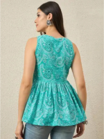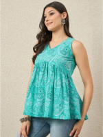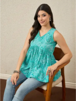 Casual Sleeveless Ethnic Motifs Women Light Green Top