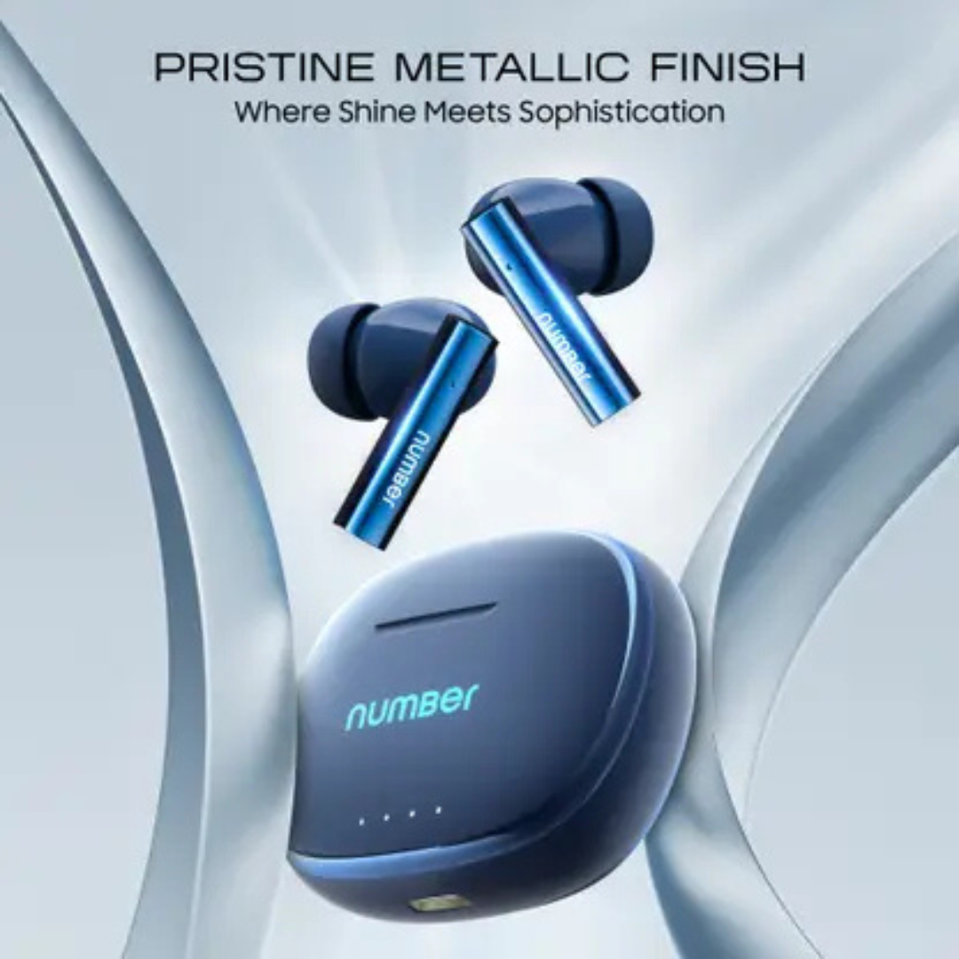 Number Navo Buds X1 w/ 50H Playtime, Dual Pairing, 13mm Speakers, ENC, 45ms Low Latency Bluetooth (Blue Pool, In the Ear)