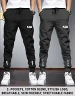 Pack of 2 Men Printed Black, Grey Track Pants