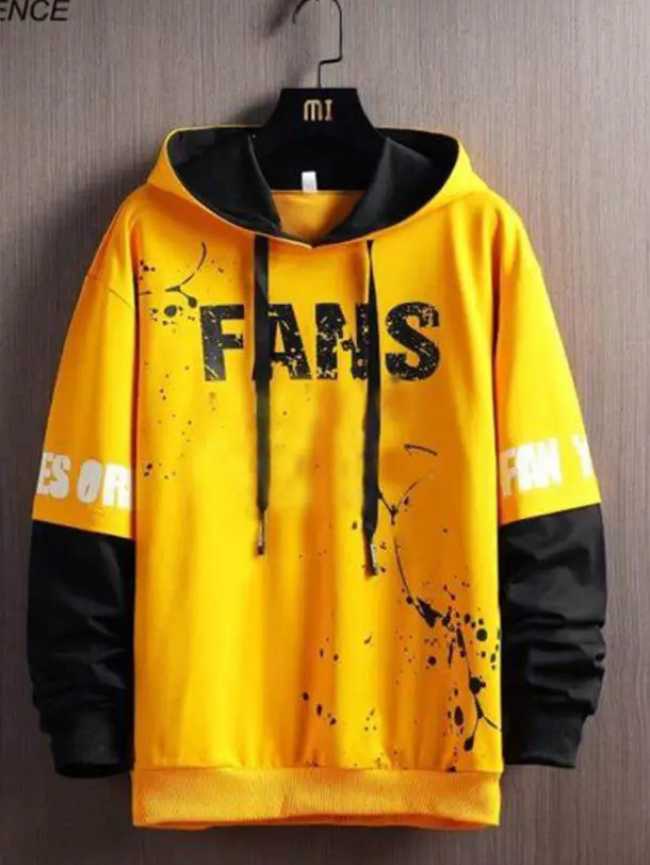 Pack of 2 Men Printed Hooded Neck Cotton Blend Black, Yellow T-Shirt