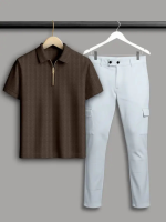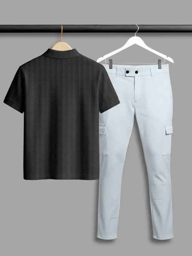 Pack of 2 Men Self Design Polo Neck Cotton Blend Black, Grey T-Shirt