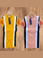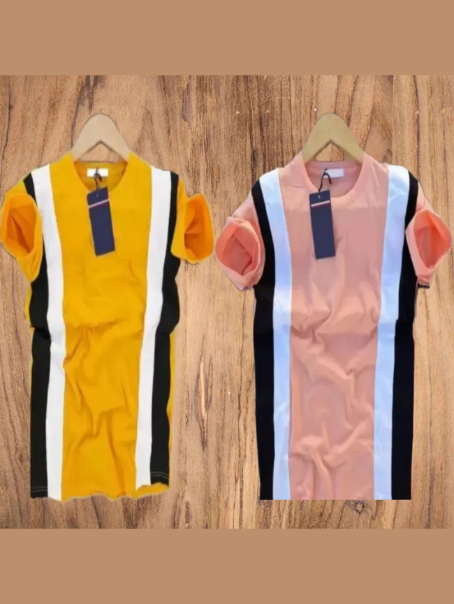 Pack of 2 Men Striped Round Neck Polyester Yellow, Pink T-Shirt
