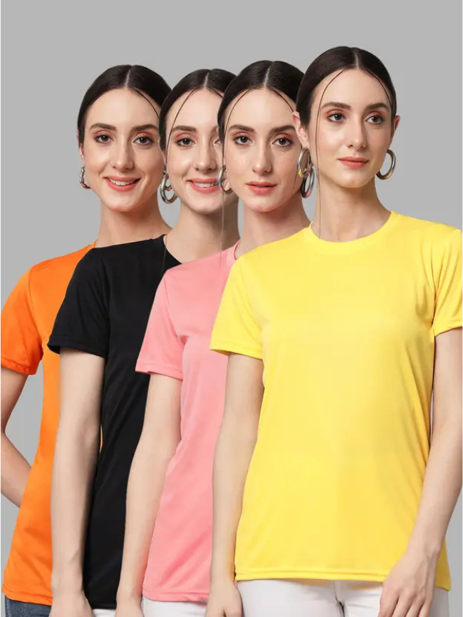 Pack of 4 Women Solid Round Neck Polyester Multicolor T-Shirt
