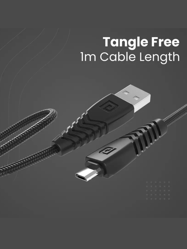 Portronics Micro USB Cable 2 A 1 m Nylon Braided Konnect B (Compatible with Mobile, Computer, Black, One Cable)