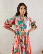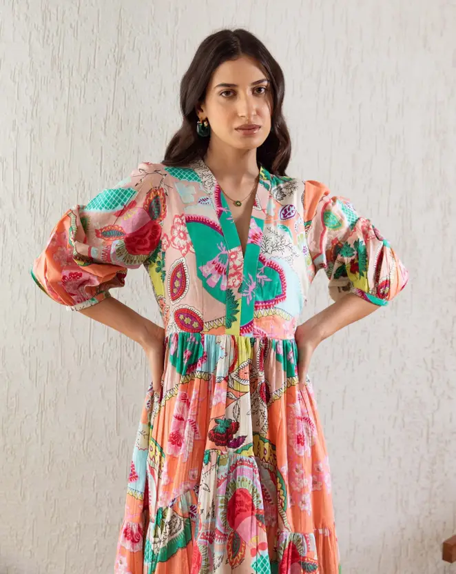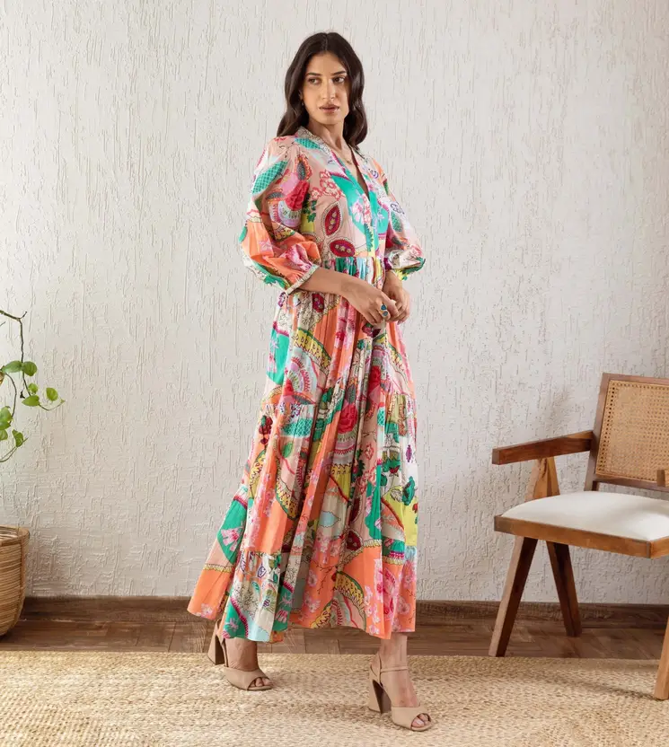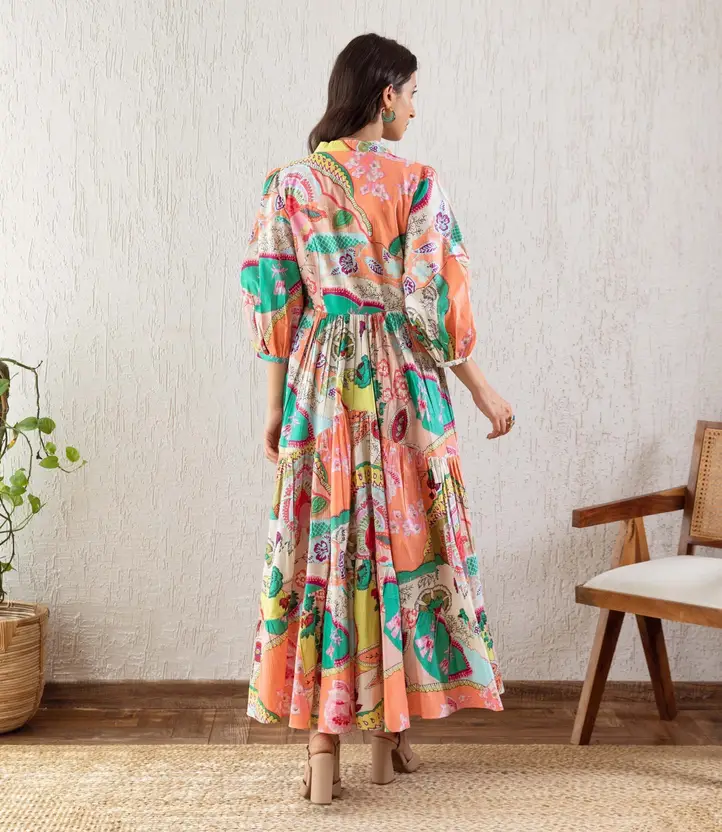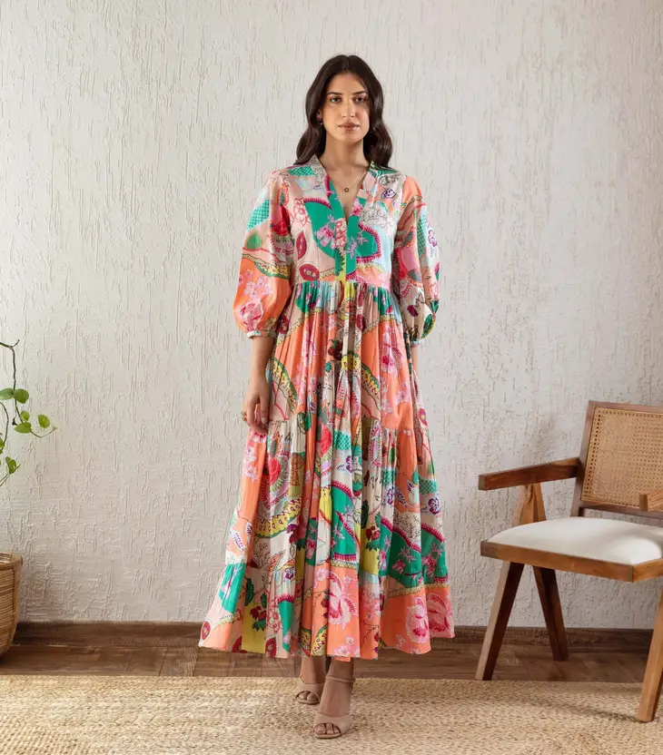 Women Gathered Multicolor Maxi/Full Length Dress