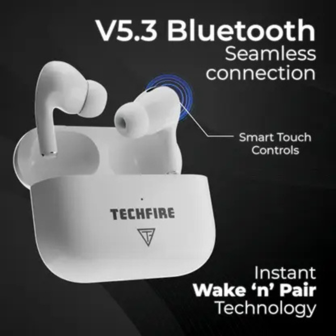 TECHFIRE BoomBuds TWS Earbuds with 100 HRS Playtime,(50ms Low Latency), Bluetooth v5.3 Bluetooth (White, True Wireless)