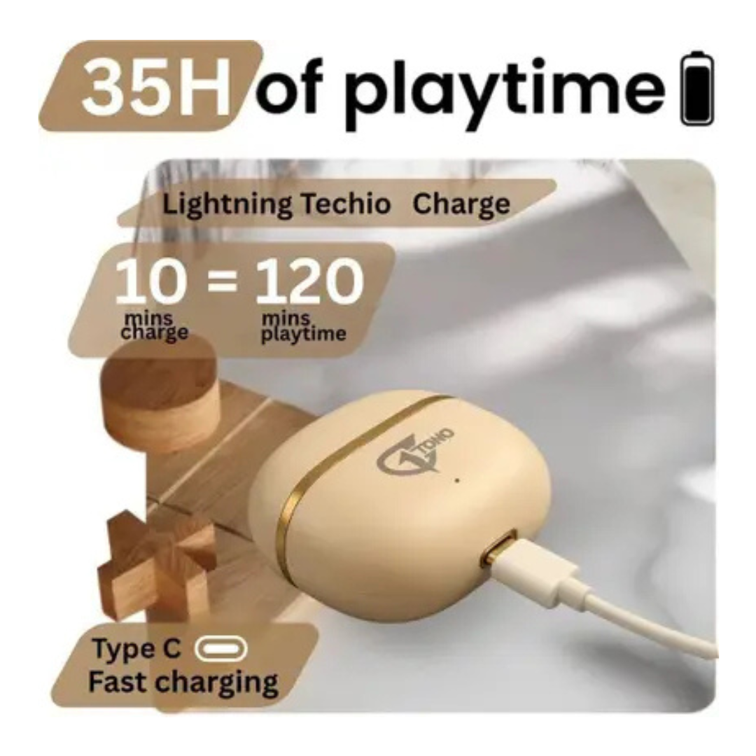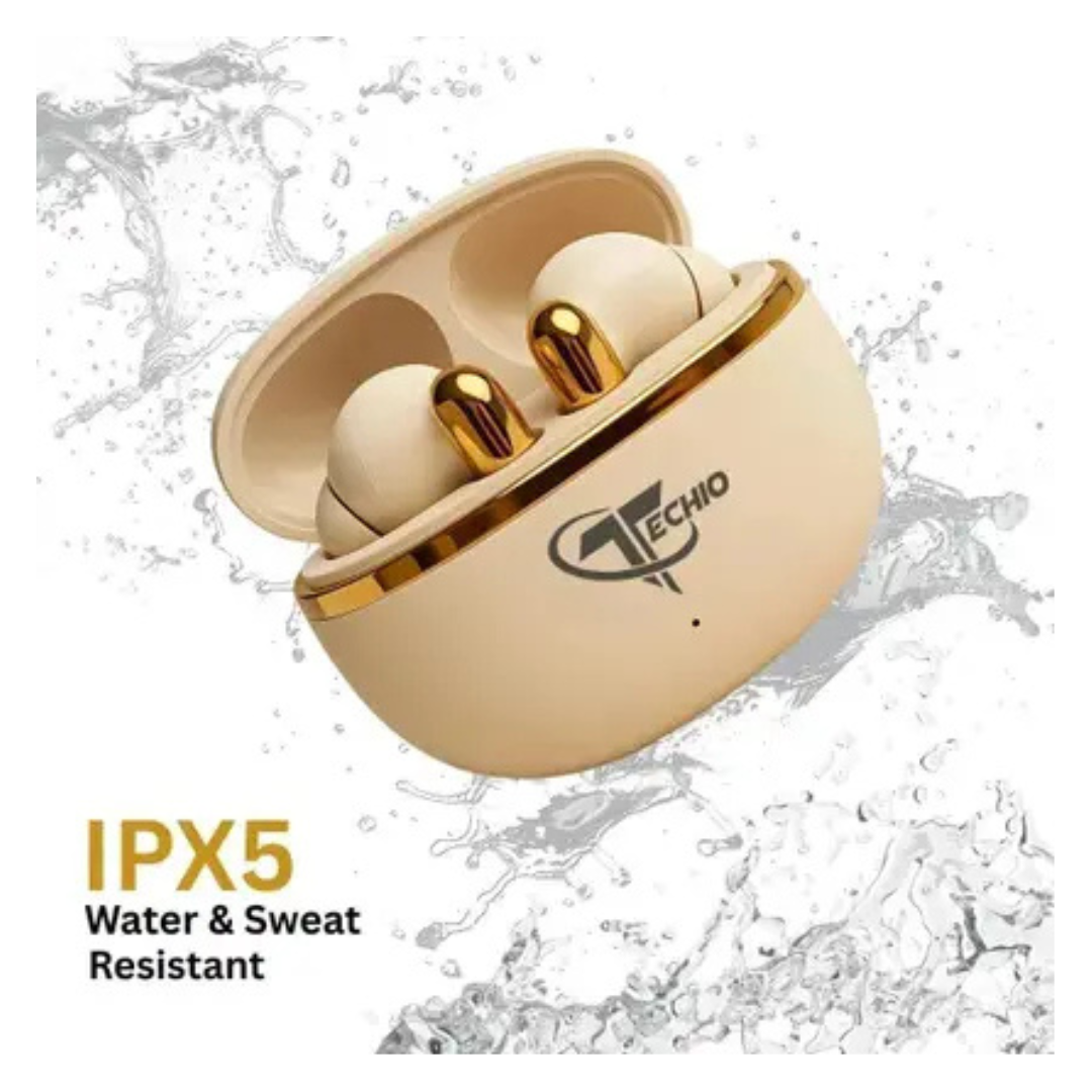 TECHIO AirBeats Wireless Earbuds with Dual Mic ENC for Clear Calls, 50H Playback Bluetooth (Golden, True Wireless)