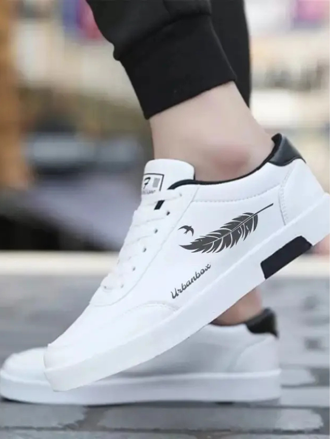 Trending Latest Stylish Sneakers For Men (White, Black , 8)