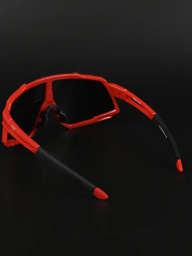 UV Protection, Mirrored, Riding Glasses Sports, Wrap-around, Over-sized, Rectangular Sunglasses (Free Size) (For Men & Women, Red)