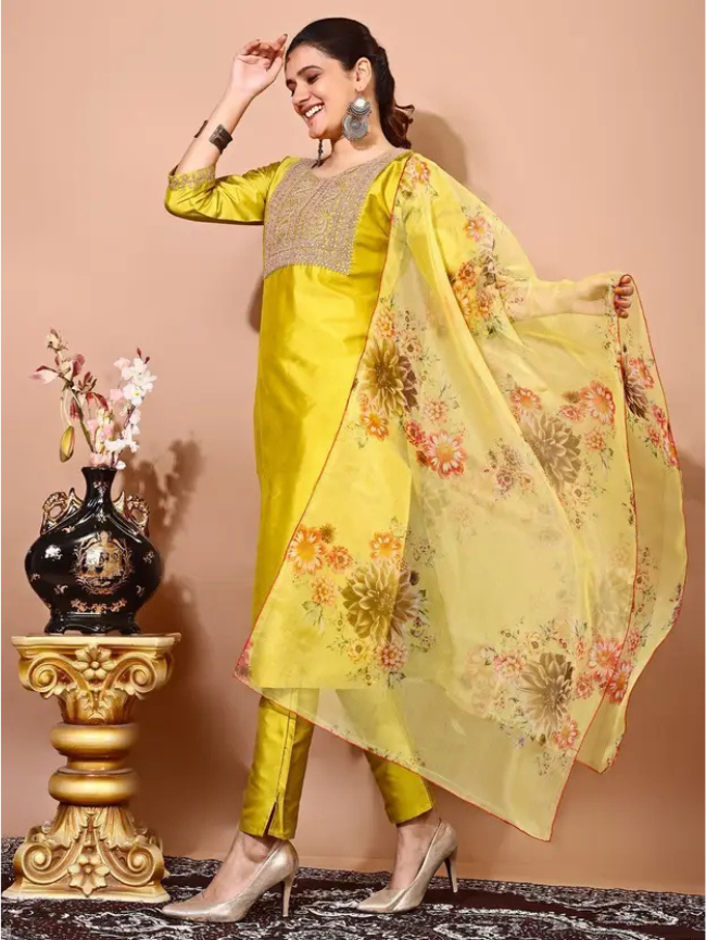 Women Art Silk Kurti Pant Dupatta Set