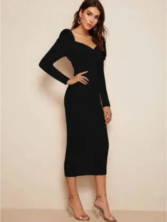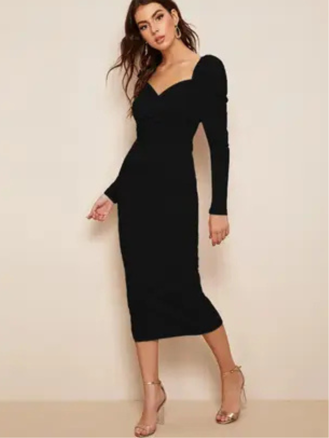 Women Bodycon Black Midi/Calf Length Dress