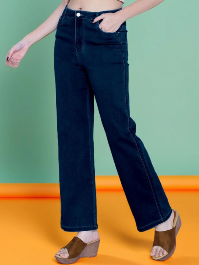Women Solid Bootilicious Wide Leg High-Rise Stretchable Jeans