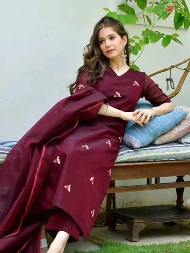 Women Cotton Blend Ethnic Top Pant Attached Dupatta Set