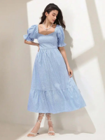 Women Fit and Flare Light Blue Maxi/Full Length Dress