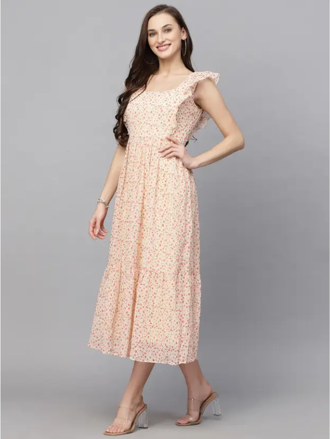 Women Fit and Flare Multicolor Midi/Calf Length Dress