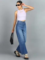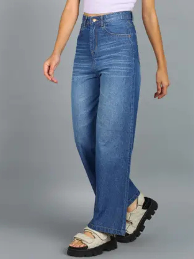 Women Flared Mid Rise Light Blue Jeans