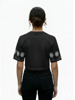 Women Floral Print Round Neck Pure Cotton Black T-Shirt