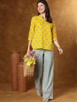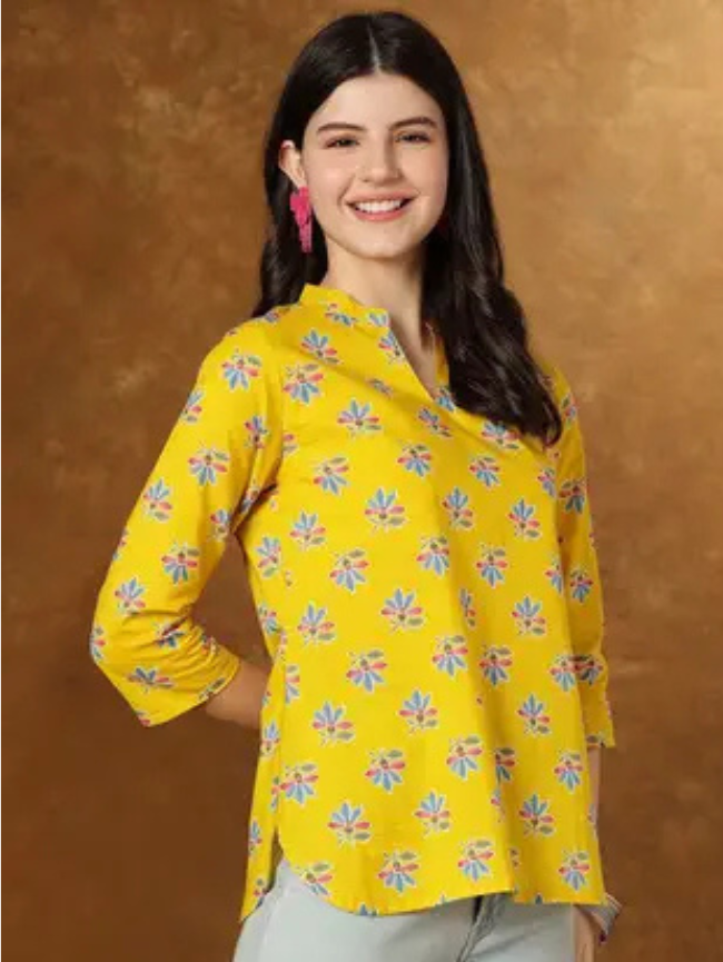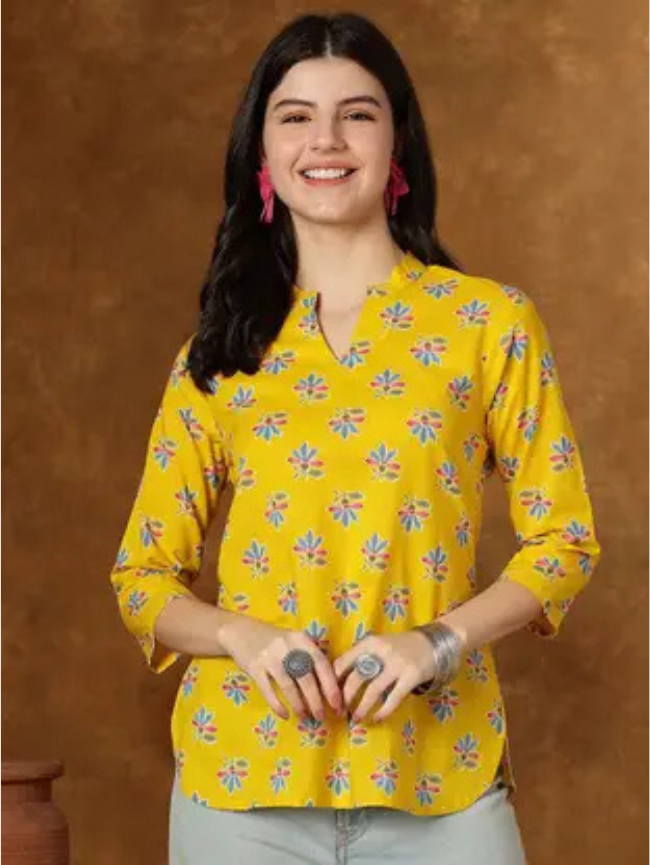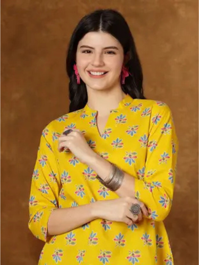 Women Floral Print Viscose Rayon Straight Kurta (Yellow)