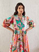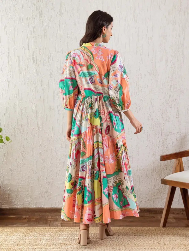 Women Gathered Multicolor Maxi/Full Length Dress