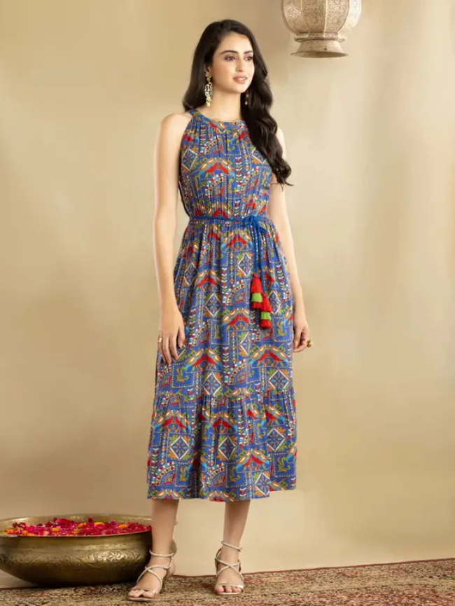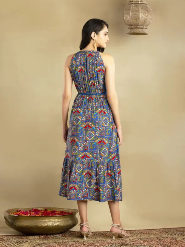 Women Fit and Flare Blue Maxi/Full Length Dress