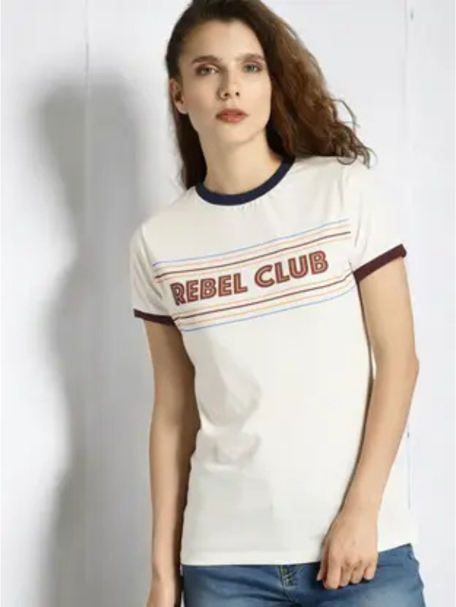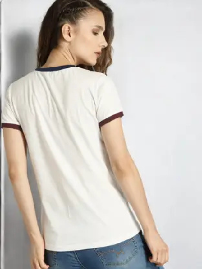 Women Printed Round Neck Pure Cotton White T-Shirt