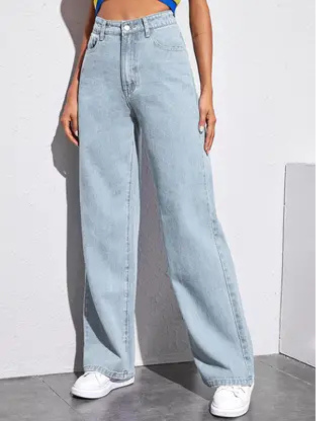 Women Straight Fit High Rise Blue Jeans