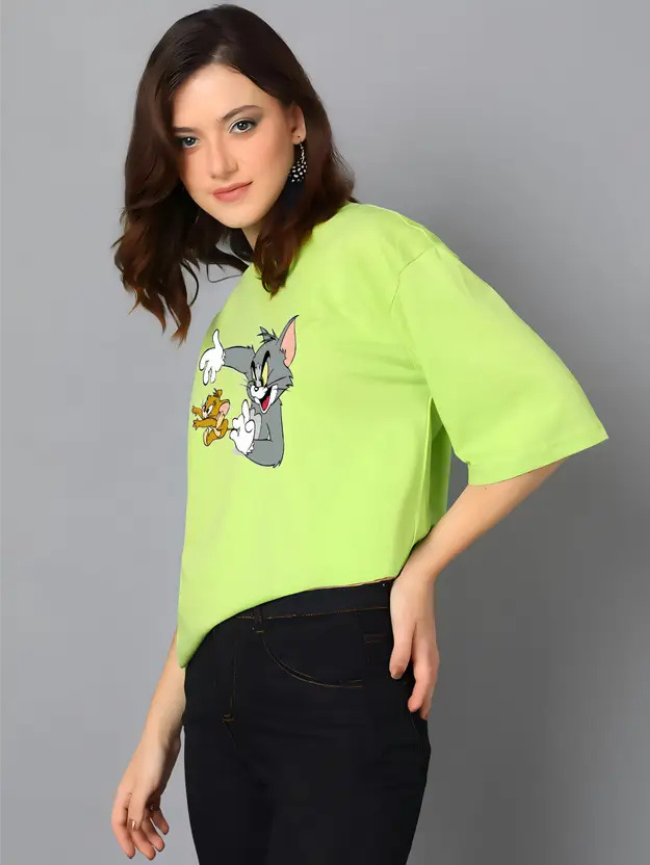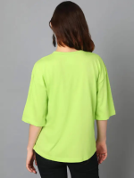 Women Typography Round Neck Cotton Blend Light Green T-Shirt