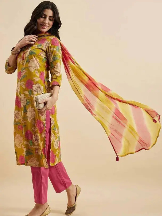 Women Viscose Rayon Kurta Pant Dupatta Set