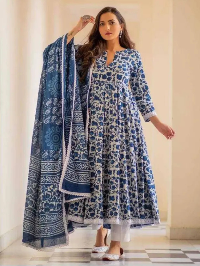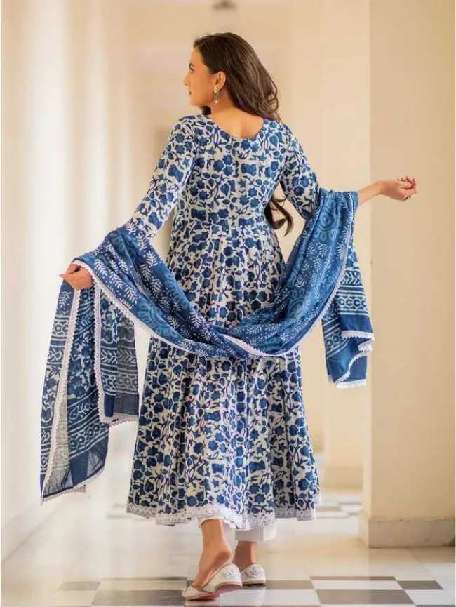 Women Fit and Flare Blue Maxi/Full Length Dress