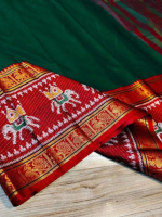 Woven, Temple Border Kanjivaram Silk Blend, Pure Silk Saree (Green)